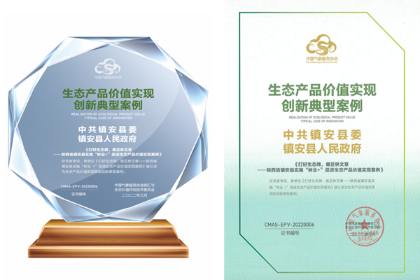 經(jīng)中國(guó)氣象服務(wù)協(xié)會(huì)碳匯與生態(tài)價(jià)值評(píng)估技術(shù)委員會(huì)評(píng)定:《打好生態(tài)牌 做足林文章——陜西省鎮(zhèn)安縣實(shí)施“林業(yè)+”促進(jìn)生態(tài)產(chǎn)品價(jià)值實(shí)現(xiàn)案例》被認(rèn)定為生態(tài)產(chǎn)品價(jià)值實(shí)現(xiàn)首批創(chuàng)新典型案例。