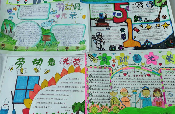 靈巧的小手描繪勞動(dòng)的光榮,真誠(chéng)地用文字感悟勞動(dòng)的偉大。休息之余,同學(xué)們或制作手抄報(bào),或?qū)懽魑?,用精巧的?gòu)思,生動(dòng)的圖畫(huà),真誠(chéng)的文字,深刻的思想,表現(xiàn)勞動(dòng)最偉大、勞動(dòng)者最光榮的主題。