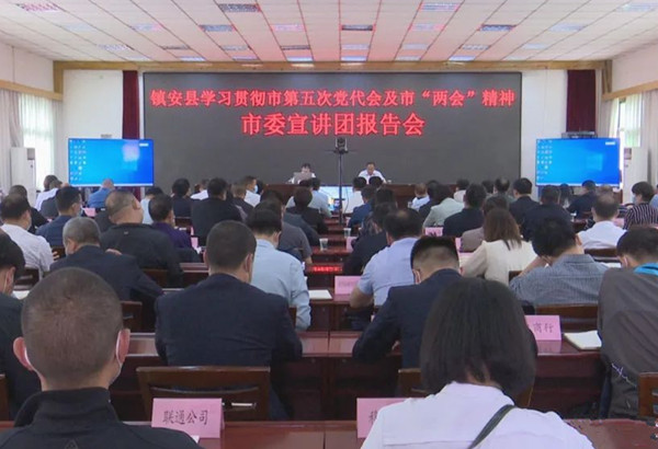 5月7日,鎮(zhèn)安縣召開學(xué)習(xí)貫徹商洛市第五次黨代會(huì)及市“兩會(huì)”精神宣講報(bào)告會(huì)。邀請(qǐng)市委黨校經(jīng)濟(jì)學(xué)教研室副主任、副教授陳永芝作宣講報(bào)告。縣委書記馮朝勇、縣人大常委會(huì)主任賈小民、縣政協(xié)主席楊清平、縣委副書記吳春亮等在家縣級(jí)領(lǐng)導(dǎo)聆聽報(bào)告??h委常委、宣傳部長馮銳主持會(huì)議并講話。