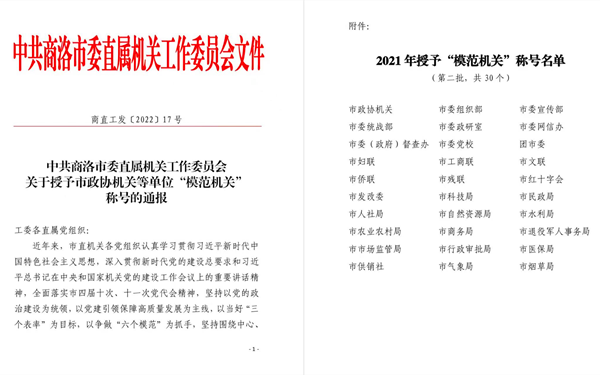2022年以來,商洛市僑聯(lián)堅(jiān)持以習(xí)近平新時(shí)代中國特色社會(huì)主義思想和習(xí)近平總書記來陜考察重要講話重要指示精神為指導(dǎo),認(rèn)真落實(shí)市第五次黨代會(huì)工作部署,圍繞打造“一都四區(qū)”目標(biāo),全面推進(jìn)“三百四千”工程,充分發(fā)揮僑聯(lián)工作優(yōu)勢(shì),團(tuán)結(jié)凝聚廣大歸僑僑眷和海外僑胞,在服務(wù)經(jīng)濟(jì)發(fā)展、積極參與疫情防控、促進(jìn)僑界和諧穩(wěn)定、拓展海外聯(lián)誼、弘揚(yáng)中華文化等方面做出了積極的貢獻(xiàn),開創(chuàng)了疫情下僑聯(lián)工作的新局面。2022年5月,商洛市僑聯(lián)被市委機(jī)關(guān)工委授予“模范機(jī)關(guān)”稱號(hào)。