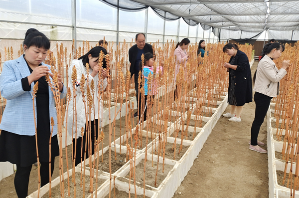 投資建設(shè)這個園區(qū)的是當?shù)厝肆焊槐?。他是天麻種植能手,是園區(qū)的負責人,也是帶領(lǐng)群眾脫貧致富的領(lǐng)路人,前不久剛剛被授予“陜西省勞動模范”榮譽稱號。帶著好奇和疑問,近日筆者走進丹鳳縣良種天麻產(chǎn)業(yè)園,大棚里的天麻花蔚為壯觀,讓人眼前一亮,梁富斌正聚精會神指導村民給有性天麻授粉,閑暇之余和他聊起了他的天麻“致富路”。