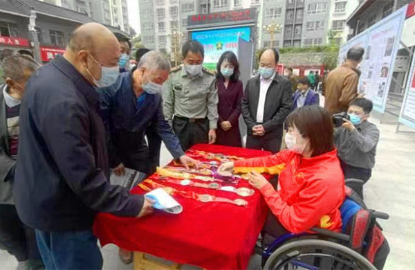 在表彰大會(huì)的過程中,還舉行了殘疾人技能展演觀摩交流活動(dòng)。在全國(guó)自強(qiáng)不息模范魏萬林創(chuàng)辦的鳳林科技公司展臺(tái)前,琳瑯滿目的活性炭炭雕工藝品,既能吸附甲醛又是精美裝飾,引起了參觀者的濃厚興趣。該公司安置勞動(dòng)力450余人,其中殘疾人50人。在殘疾人射擊運(yùn)動(dòng)員黨詩蓓展臺(tái)前,擺放整齊的30余枚國(guó)際國(guó)內(nèi)大賽獎(jiǎng)牌。她因出生患有先天性脊膜膨出癥而雙下肢殘疾,2002年高中畢業(yè)后,經(jīng)丹鳳縣殘聯(lián)推薦,參加殘疾人運(yùn)動(dòng)員選拔,順利進(jìn)入陜西省殘疾人射擊隊(duì)進(jìn)行試訓(xùn),通過頑強(qiáng)拼搏、勤學(xué)苦練,在2012年英國(guó)倫敦殘奧會(huì)上獲得個(gè)人銀牌。木雕大師賈滿濤是一名肢體殘疾人,正在展臺(tái)前嫻熟地操作著機(jī)器加工手串珠子、根雕等各種工藝品。據(jù)了解他在棣花古鎮(zhèn)景區(qū)宋金橋下擺攤,一年下來能掙二三萬元,基本能維持一家人生活。盲人按摩技師張建博嫻熟精湛的手法贏得接受現(xiàn)場(chǎng)按摩體驗(yàn)人群的交口稱贊。他在縣城龍駒大街東北角開辦了“丹鳳縣盲人按摩中心”,收徒傳技從業(yè)10人,設(shè)床位20張,因收費(fèi)低廉,技術(shù)精湛而響譽(yù)縣城。眾位殘疾人身殘志堅(jiān)、苦練技能、自強(qiáng)不息的精神風(fēng)采,使與會(huì)人員深受感染,無不肅然起敬。竹編工藝傳承人彭海朝是一名下肢殘疾人,他從小傳承了竹編技藝,在竹林關(guān)鎮(zhèn)建起了海朝竹編工作室,他現(xiàn)場(chǎng)演示了竹編手法,地上擺滿了各類精美的竹編工藝品,提升了傳統(tǒng)竹編的附加值,也為他帶來了月均3000元以上的固定收入?!暗P燒烤第一人”劉三平在本次活動(dòng)中演示了烤肉技法,他烤出的羊肉不膩不膻、外酥里嫩、色香味美,響譽(yù)全城。他做了十八年的燒烤,安置了30多人就業(yè),帶動(dòng)了十多戶家庭就業(yè)脫貧。
