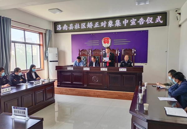 為進(jìn)一步規(guī)范社區(qū)矯正管理,提升社區(qū)矯正對象監(jiān)管水平,5月17日,洛南縣司法局對城關(guān)司法所新入矯的 9名社區(qū)矯正對象進(jìn)行集中入矯宣告,9名社區(qū)矯正對象涉事同一案件,均是城關(guān)街道辦居民,因?qū)め呑淌伦锉宦迥峡h人民法院判處緩刑。洛南縣人民檢察院副檢察長任建民、縣人民法院刑庭庭長趙建業(yè)、縣公安局治安大隊(duì)副隊(duì)長劉明召、司法局副局長王軍榮出席本次集中宣告儀式。社區(qū)矯正執(zhí)法警察、司法局矯正股干部、城關(guān)司法所工作人員、社區(qū)矯正小組成員、社區(qū)幫教志愿者及社區(qū)矯正對象家屬參加了宣告儀式。