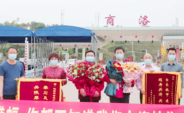 在隊友們返商之日,院領(lǐng)導(dǎo)陳建玲、宋戰(zhàn)良分別帶領(lǐng)相關(guān)人員在商洛北收費站出口廣場舉行了簡短的歡迎儀式,部分同事、隊員家屬手捧鮮花和歡迎橫幅前來迎接。院領(lǐng)導(dǎo)向三人送上鮮花,對他們在西安海關(guān)常態(tài)化防疫和上海疫情最危急時刻的緊急馳援表達(dá)了崇高敬意,展現(xiàn)了商醫(yī)人過硬的專業(yè)素養(yǎng)和優(yōu)良的工作作風(fēng)。(田家臣)