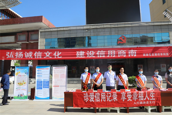 6月14日,商南縣發(fā)改局聯(lián)合人民銀行商南縣支行組織全縣各金融機(jī)構(gòu)、稅務(wù)、公安、檢察院等部門在縣人民政府廣場(chǎng)開展了主題為“弘揚(yáng)誠(chéng)信文化,建設(shè)信用商南”的“6.14信用關(guān)愛日”集中宣傳活動(dòng),著力提升全縣人民知信守信意識(shí),全面推進(jìn)全縣社會(huì)信用體系建設(shè)。
