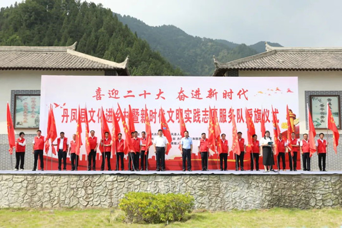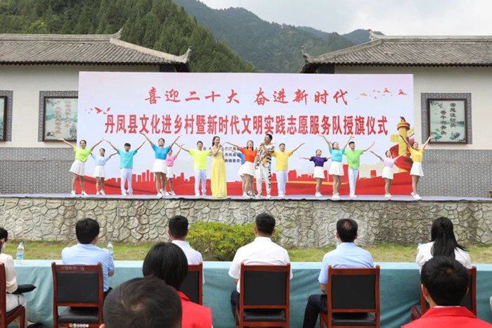 6月22日,“喜迎二十大 奮進(jìn)新時(shí)代”丹鳳縣文化進(jìn)鄉(xiāng)村暨新時(shí)代文明實(shí)踐志愿服務(wù)隊(duì)授旗儀式在商鎮(zhèn)保定村舉行。商洛市市委常委、宣傳部部長(zhǎng)賈永安,市政協(xié)副主席、縣委書(shū)記徐秀全,市委宣傳部副部長(zhǎng)劉明權(quán),縣委常委、宣傳部部長(zhǎng)楊建峰出席儀式;副縣長(zhǎng)趙雅萍主持儀式。