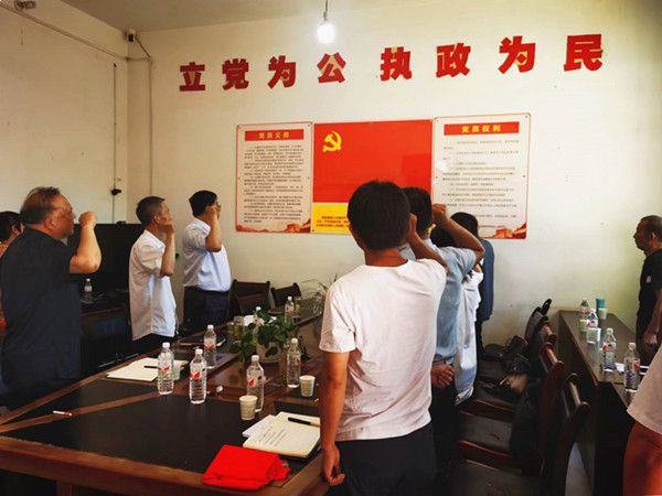 “我志愿加入中國共產(chǎn)黨,擁護黨的綱領(lǐng)、遵守黨的章程、履行黨員義務......”在丹南社區(qū)4個黨支部共計50余名參會黨員,在李洼村3個黨支部共30余名黨員面對黨旗,莊嚴地舉起右拳,由市僑聯(lián)黨組書記任建衛(wèi)領(lǐng)誓,重溫了入黨誓詞,一句句鏗鏘有力的誓言,又一次對黨作出了莊嚴的承諾,深情表達著黨員們不忘初心、牢記使命,為共產(chǎn)主義事業(yè)奮斗終身的堅定信念。