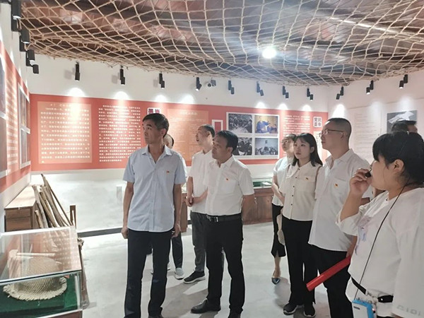第九黨支部的黨員們?cè)谥v解員的帶領(lǐng)下,依次參觀農(nóng)耕展廳、作坊群、劉西有紀(jì)念館、黨性體檢中心等區(qū)域,通過(guò)大量的珍貴圖片、實(shí)物、影像等形式學(xué)習(xí)劉西有同志帶領(lǐng)馬爐群眾開山劈石、修地造田的光輝事跡。黨員們?cè)趧⑽饔屑o(jì)念廣場(chǎng)莊嚴(yán)地重溫入黨誓詞,進(jìn)一步堅(jiān)定理想信念。
