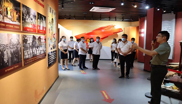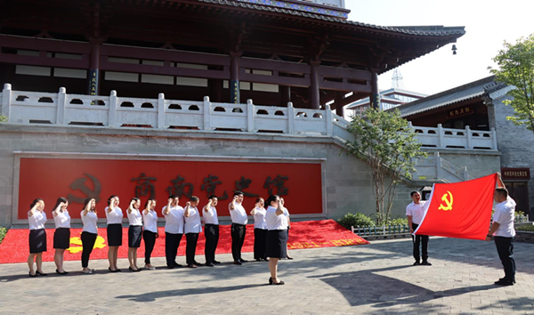 參觀黨史館,回顧黨的百年奮斗史。6月30日上午,任家溝社區(qū)黨總支聯(lián)合幫扶單位縣招商服務中心黨員、預備黨員一行來到商南黨史館,重溫革命紅色歲月,共憶黨的光輝歷程。全體黨員著正裝、面對黨旗、行注目禮?!拔抑驹讣尤胫袊伯a(chǎn)黨,擁護黨的綱領……”鏗鏘有力的聲音在黨員的耳邊縈繞。通過參觀黨史館引導廣大黨員干部要堅定不移聽黨話、不忘初心跟黨走、飲水思源感黨恩。