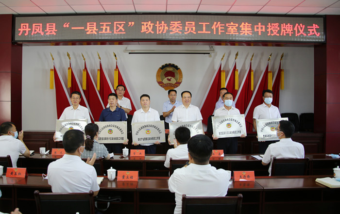 7月8日,丹鳳縣舉行“一縣五區(qū)”政協(xié)委員工作室集中授牌儀式,商洛市政協(xié)副主席、丹鳳縣委書記徐秀全出席授牌儀式并講話,縣委副書記、縣長郭安貴出席授牌儀式,縣政協(xié)主席王舒主持授牌儀式。