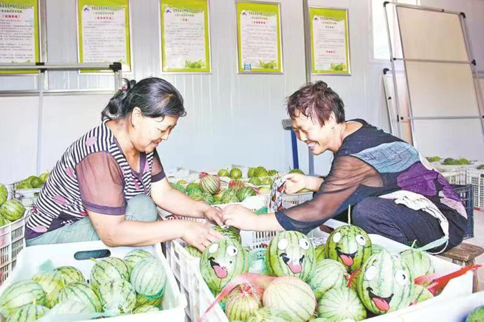 “我現(xiàn)在的工作主要是包裝小西瓜和水果玉米,最近一個(gè)月西瓜熟了,每天都要來,一個(gè)月能掙2000多塊錢,一年下來收入1萬多元是很輕松的?!闭f起自己的收入,羅村東嶺組村民張?jiān)滦阈Φ煤喜粩n嘴。