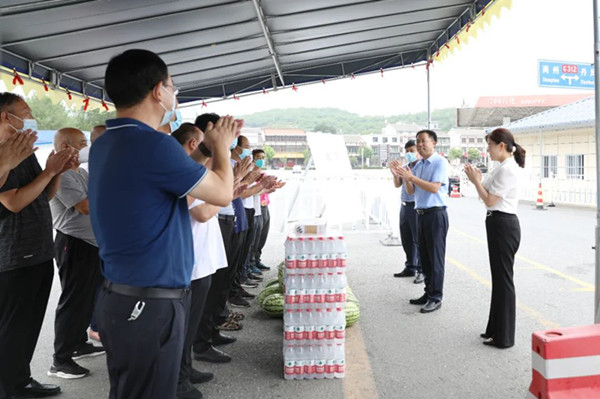 高速公路出入口是疫情防控的前哨關(guān)口。在滬陜高速丹鳳、棣花、竹林關(guān)出口,徐秀全看望慰問了疫情防控工作人員,為他們送去礦泉水、藿香正氣水、毛巾等防暑降溫物品,充分肯定值守檢查成效,叮囑大家合理進(jìn)行調(diào)休,在做好防暑降溫、自我防護(hù)的同時,精準(zhǔn)規(guī)范執(zhí)行疫情防控政策措施,堅(jiān)決守牢全縣疫情防控“第一道防線”。