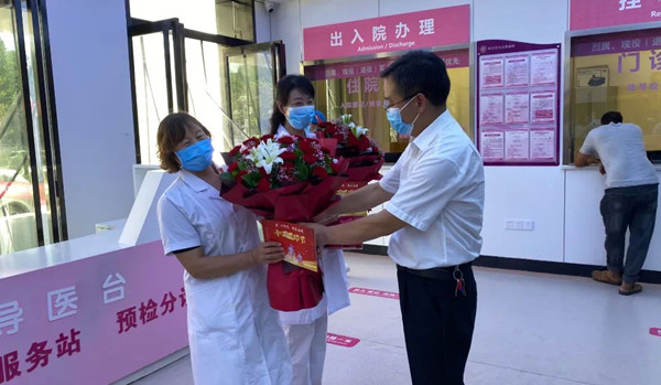 商洛市衛(wèi)健委黨組書記、主任馬建琦在門診樓向楊亞玲、楊帆兩位醫(yī)師代表送上鮮花和慰問金。并向廣大醫(yī)務(wù)工作者嚴(yán)謹(jǐn)求實(shí)、精益求精的工作態(tài)度表示充分的肯定和贊揚(yáng),勉勵(lì)大家繼續(xù)發(fā)揚(yáng)甘于奉獻(xiàn)、大愛無疆的崇高精神,繼續(xù)守護(hù)婦幼健康。