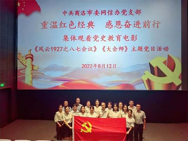 為大力弘揚偉大建黨精神,推進(jìn)黨史學(xué)習(xí)教育常態(tài)化、長效化,持續(xù)提升黨員干部隊伍凝聚力和戰(zhàn)斗力,8月12日,商洛市委網(wǎng)信辦黨支部開展了“重溫紅色經(jīng)典·感恩奮進(jìn)前行”紅色觀影主題黨日活動。全體黨員集中觀看黨史題材電影《風(fēng)云1927》,重溫革命歷史,接受思想洗禮。