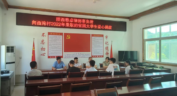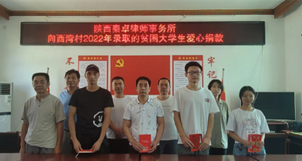 近日,陜西秦卓律師事務所律師在顧問村商南縣金絲峽鎮(zhèn)西灣村開展法律服務工作中,得知剛考上西北農(nóng)林科技大學的胡某鈺因家庭原因,面臨入學難問題。胡某鈺的家庭本就不富裕,父親因一次意外摔傷做了多次開顱手術,使得本就貧寒的家庭更是雪上加霜。村里還有4名2022年錄取的大學生也存在因家庭經(jīng)濟困難無法入學的現(xiàn)象。為了讓這些莘莘學子走出大山,圓夢大學,接受更好的教育,陜西秦卓律師事務所黨支部研究決定,對該村5名貧困大學生進行愛心捐款。