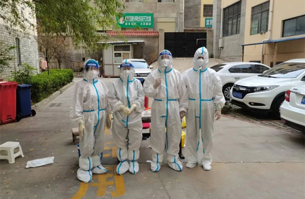 疫情就是命令,防控就是責(zé)任。在學(xué)校黨總支書記、校長(zhǎng)、志愿者服務(wù)隊(duì)隊(duì)長(zhǎng)田小龍的號(hào)召下,商州一小志愿者服務(wù)隊(duì)王涵波、呂班、田東、郭輝、魏丹江、崔新軍、祝建平等7位教師主動(dòng)請(qǐng)纓,在副校長(zhǎng)梁濤的帶領(lǐng)下,前往商洛市自然資源局家屬院封控區(qū),參與疫情防控志愿服務(wù)工作。他們身著防護(hù)服,忍受著炙烤和熱浪,來回穿梭在所負(fù)責(zé)的小區(qū),為群眾配送生活物資,處理生活垃圾,開展政策宣傳,精準(zhǔn)服務(wù)、不懼辛勞,濕透的衣服、面頰的勒痕亦不能阻擋他們細(xì)致入微的志愿服務(wù)工作。他們不分晝夜與時(shí)間賽跑,同疫情抗?fàn)?,義無反顧地奮戰(zhàn)在抗疫最前沿。