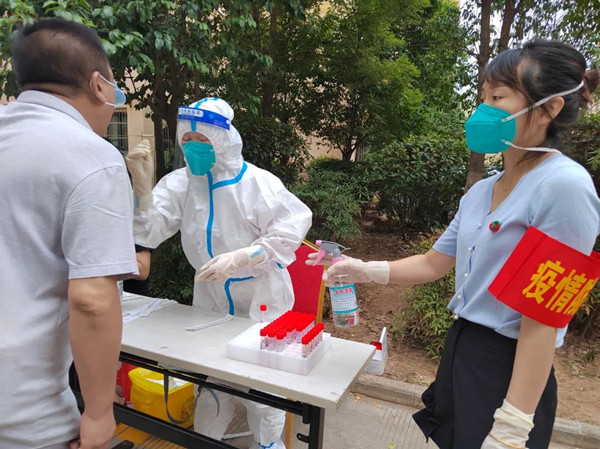 接到商洛市局《關(guān)于組織教師參與社區(qū)疫情防控工作的緊急通知》,商洛市商州區(qū)第一小學(xué)又有一批志愿者挺身而出,主動(dòng)到自己所屬社區(qū)或居住小區(qū)報(bào)到,迅速投入到社區(qū)疫情防控工作中。田智力、黨俊銳、張瑜、王妍、王蕾、周靜等老師全力配合社區(qū)做好全員核酸檢測(cè)。他們服從社區(qū)的調(diào)度安排,或?yàn)闄z測(cè)的人員錄入信息,或?yàn)闄z測(cè)臺(tái)消毒消殺,或積極組織居民保持安全距離有序排隊(duì),與醫(yī)務(wù)人員一起并肩作戰(zhàn)。面對(duì)每一次的近距離接觸,他們毫不畏懼,保障了社區(qū)全員核酸檢測(cè)工作順利完成。邵娟、張苗、趙倩、金謙、王敏、張文利、田建平、劉亞利、孔軍鋒、鄭靜惠、王登峰、舒鵬濤、敬小文、孫永平、齊彩妮、劉亞妮、楊歡歡、魏玲珍、范娜等老師頂著炎熱,在所屬小區(qū)進(jìn)行防疫安全值班。他們不講條件、不叫苦不叫累,堅(jiān)守崗位,以實(shí)際行動(dòng)為小區(qū)群眾筑起一道安全屏障。
