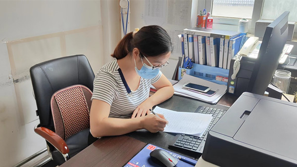 在這次疫情防控工作中,她身擔重任,隨時要對全院醫(yī)務(wù)人員進行全面調(diào)度。8月16日,所抽調(diào)的30名采樣人員參加完全員核酸采樣后,接上級命令繼續(xù)入戶C類密接采樣到次日5時,5點30分再繼續(xù)開展第二輪核酸采樣。為了補充采樣人員體力,后勤人員多方籌備雞蛋,夜晚煮熟天明送至采樣點;為了安撫采樣人員崩潰的心情,她電話、微信溝通安慰;為了調(diào)動大家抗疫信心,她寫了“致醫(yī)院全體黨員干部職工的倡議書”;為了保障采樣工作的順利開展,她和值班人員每天熬夜準備第二天采樣防護物資;為了保障職工家屬生活,她和工會主席組建了“疫情院內(nèi)購物群”、聯(lián)系配送公司,為職工及家屬送蔬菜和生活用品,讓在前方抗戰(zhàn)的人員無后顧之憂。