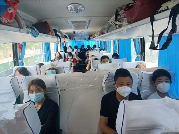 9月3日,在山陽縣豐東新區(qū)社區(qū),一群戴著口罩、拿著行李、間隔“兩米線”的學(xué)生正有序排隊(duì)準(zhǔn)備乘車,一旁工作人員正忙著乘車事宜,按照相關(guān)要求核驗(yàn)身份、測(cè)量體溫、查看健康碼、核酸報(bào)告和行李消毒,確保低風(fēng)險(xiǎn)區(qū)滯留學(xué)生應(yīng)返盡返、應(yīng)接盡接、平安返校?!霸詾槭鼙据喴咔橛绊?,我們可能無法正常返校上學(xué)了,沒想到你們主動(dòng)聯(lián)系我,幫我們代辦各類手續(xù),安排做核酸,還組織“山陽—西安”點(diǎn)對(duì)點(diǎn)接送車,專程送我們?nèi)ネ獾厣蠈W(xué),真的太暖心了,感謝黨和政府,你們辛苦了?!币幻麑W(xué)生高興地對(duì)旁邊工作人員說,感激之情溢于言表。