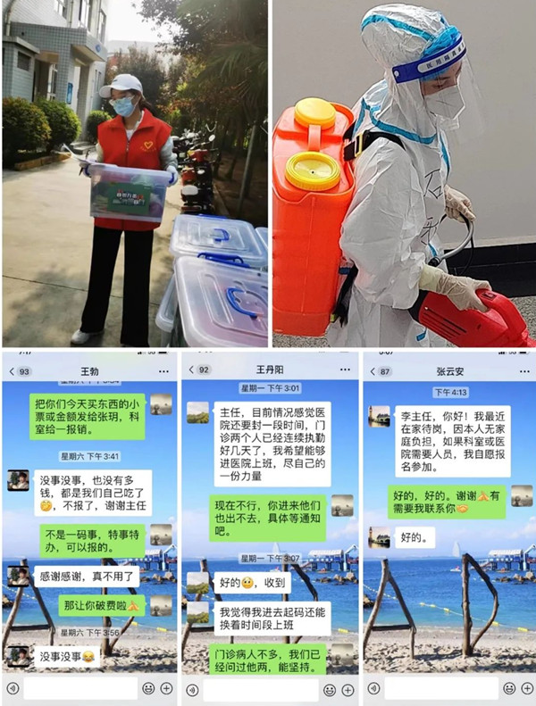 藥學(xué)部李豪,作為一名黨員,在最困難的時(shí)刻,主動(dòng)請(qǐng)纓,積極協(xié)助科室工作:為東區(qū)同事送去生活必需品;天氣驟冷,為院內(nèi)同事送來(lái)衣物;臨時(shí)為特殊患者購(gòu)買藥品。此外,藥學(xué)部劉肖依協(xié)助社區(qū)防疫工作、石雅投身志愿服務(wù)工作......大家“隨時(shí)待命、隨叫隨到”。