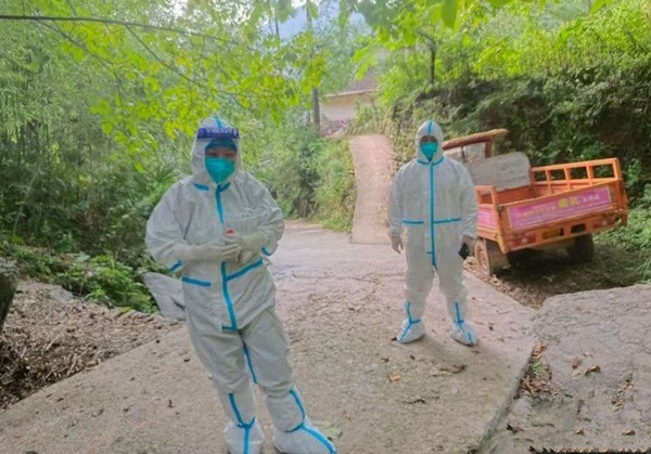 “衣沾不足惜,但使愿無違”。山陽(yáng),古稱豐陽(yáng),一個(gè)“三山加兩川”的地方,初識(shí)山陽(yáng),我和同事們來不及感受它的美,便匆匆在酒店放下行李就接到了奔赴天竺山鎮(zhèn)的任務(wù),伴著夜色我們都各自到達(dá)了目的地,一人一個(gè)村點(diǎn),一人一個(gè)戰(zhàn)場(chǎng),就這樣,我們真的到了山陽(yáng)。8月20日,這是山陽(yáng)疫情爆發(fā)的第五天,3:50,鬧鐘準(zhǔn)時(shí)響起,簡(jiǎn)單的洗漱后便和黃尚安支書對(duì)接了今天的采樣任務(wù),仔細(xì)清點(diǎn)物資過后便開始前往了我的據(jù)點(diǎn):銅塔溝教學(xué)點(diǎn)。這是我第一次一個(gè)人出任務(wù),意味著我更要嚴(yán)格落實(shí)自我防護(hù)和認(rèn)真采樣,到達(dá)集中采樣點(diǎn)后,應(yīng)檢的村民已有條不紊地排起了長(zhǎng)隊(duì),口罩、帽子、手套、防護(hù)服、面屏,仔細(xì)檢查過后我便開始了采樣工作。在一個(gè)個(gè)咽拭子和一次次手消毒后,重復(fù)的動(dòng)作里我無暇顧及天邊已泛起的魚肚白,只切實(shí)地感受到了防護(hù)口罩里的滿是汗滴,原來冬天的防護(hù)服和夏天的防護(hù)服真的是不一樣的。集中采樣結(jié)束后,由黃支書、張副支書和我組成的三人組便開始了入戶采樣的工作,由于入戶多為行動(dòng)不便的老年人居多,再加上山路不平,對(duì)于體力的消耗也就更大,洗手衣早已粘在腿上,每走一步都能聽見自己氣喘吁吁的呼吸聲,這一切無疑讓核酸采樣的難度也就隨之增加,于是在心中暗自鼓勁,再走一步就到了,就再走一步,于是在一步步的沉重腳步里,我們爬上山坡,越過田埂,長(zhǎng)抒一口氣,我們終于到了。