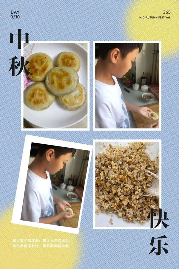 “海上生明月,天涯共此時”“詩美酒暢客歡唱,花好月圓人團圓”,歷代中秋文人們吟詩作對,互訴情意。世易時移,中秋的那份牽掛卻從不減一分。為了讓隊員們感受中秋佳節(jié)濃濃的節(jié)日氛圍,弘揚和傳承中華民族的優(yōu)秀傳統(tǒng)文化,9月8日至9月10日,在我校大隊部的精心安排下,五年級全體輔導員組織隊員們居家開展了“我做月餅送親人”主題實踐活動。