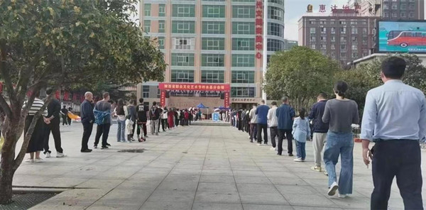 在柞水縣迎春廣場核酸檢測點,街辦財政所干部黃曉寧巡回在人群中,一遍又一遍地提醒大家。發(fā)放核酸標識、替換“戰(zhàn)友”掃碼、維持現(xiàn)場秩序、幫助老年人登記生成信息碼,是黃曉寧一早上的工作。這個采樣點每天基本采樣2300余人,她每天從五點到十一點,一直在人群里來回忙碌,沒有一刻休息時間。