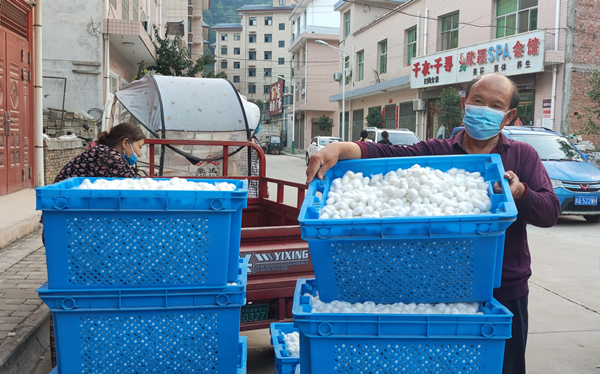近日,鎮(zhèn)安縣米糧鎮(zhèn)月明、八一、豐河等9個村蠶農(nóng)陸陸續(xù)續(xù)地載著大筐小筐的蠶繭趕赴米糧蠶繭收購站進行交售,繭站工作人員有序?qū)皇鄣男Q繭進行篩選、抽樣、定級、過秤,大伙兒忙得不亦樂乎。望著一筐筐誘人的白蠶繭即將變成“紅票子”,蠶農(nóng)的笑容更加燦爛了。