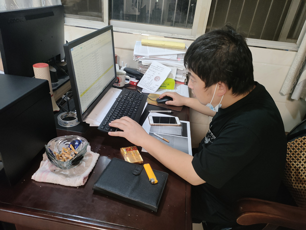 手不輟筆,他是刺促不休的“老黃?!?。王炫,男,中共黨員,現(xiàn)任西關(guān)村委會(huì)文書(shū)。疫情中他主要負(fù)責(zé)文書(shū)統(tǒng)計(jì),建檔立冊(cè),數(shù)據(jù)報(bào)送,內(nèi)勤內(nèi)務(wù)等工作,這是一個(gè)默默無(wú)聞的崗位,所有數(shù)據(jù)最終匯集至他這里,他需要夜以繼日的進(jìn)行核對(duì)并報(bào)送相關(guān)數(shù)據(jù)、文件給上級(jí),并且要將上級(jí)精神及時(shí)傳達(dá)給班子其他成員,內(nèi)勤內(nèi)務(wù)也需要他進(jìn)行統(tǒng)籌,疫情期間他文書(shū)統(tǒng)計(jì)210余份,數(shù)據(jù)報(bào)送68份,為密接者建檔立冊(cè)260余冊(cè),處理內(nèi)勤內(nèi)務(wù)134件,在文書(shū)這個(gè)崗位上默默為其他班子成員排憂解難,可稱之為默默奉獻(xiàn)“老黃?!边@一稱號(hào)。