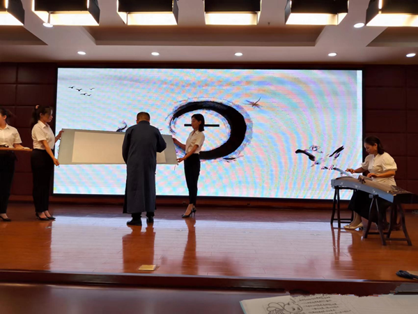 龍棟良主任現(xiàn)場揮毫落筆,閆海燕老師撫琴助興。把一場讀書雅事推向了活動的高潮!