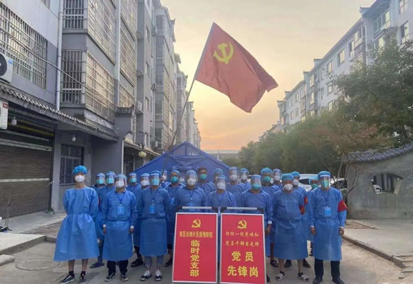 以行踐諾,筑牢“戰(zhàn)時(shí)堡壘”。大事難事看擔(dān)當(dāng),危急時(shí)刻顯本色。9月9日疫情發(fā)生當(dāng)天,接到命令的各單位黨員干部火速在社區(qū)集結(jié)。商邑社區(qū)是此次疫情的發(fā)源地,也是此次發(fā)生后疫情劃定的高風(fēng)險(xiǎn)區(qū),由于前期防護(hù)物資緊缺,一個(gè)口罩、一根筆就是他們的抗“疫”“武器”。西區(qū)北側(cè)片區(qū)25名黨員干部開展逐戶逐一摸底排查、登記造冊、張貼封條,僅一下午時(shí)間就完成了片區(qū)11棟樓385戶366人的摸排工作,并全部分類張貼紅(無人)、白(有人)封條,及時(shí)阻斷了疫情傳播鏈條,也為防控指揮部的后續(xù)行動(dòng)提供了詳實(shí)的數(shù)據(jù)底冊。