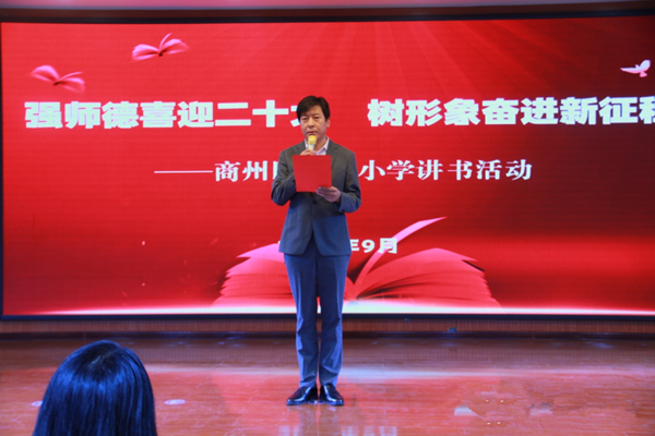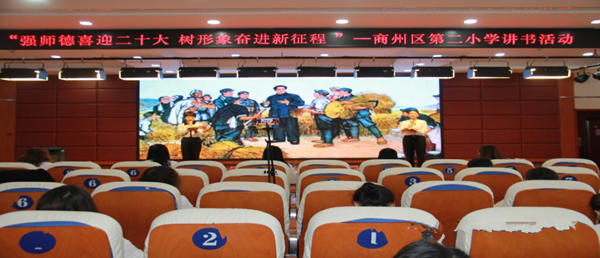 為喜迎黨的二十大勝利召開,繼續(xù)深化師德師風(fēng)建設(shè),營造愛讀書、善讀書、讀好書的濃厚氛圍, 9月20日上午,商洛市商州區(qū)第二小學(xué)在七樓會議室舉辦了“強師德喜迎二十大 樹形象奮進(jìn)新征程”教師講書活動?;顒佑赏跄取垪澚祭蠋熤鞒?,五年級組全體教師在主會場參加活動,其他各年級教師通過釘釘會議分別在教室觀看直播。