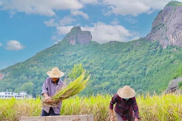 “夏插一把秧,秋收一擔(dān)糧”。金秋九月,正是稻菽金黃的季節(jié),秋風(fēng)拂過(guò),沉甸甸的稻穗在微風(fēng)中搖曳著,散發(fā)出豐收的芳香。秋分這天,法官鎮(zhèn)的水稻正式進(jìn)入了收割季,農(nóng)戶們?yōu)閾屪デ绾锰鞖?,采用機(jī)器與人工混合采收的方式,在田間來(lái)回穿梭,確保顆粒歸倉(cāng),田野間一派繁忙豐收的景象。