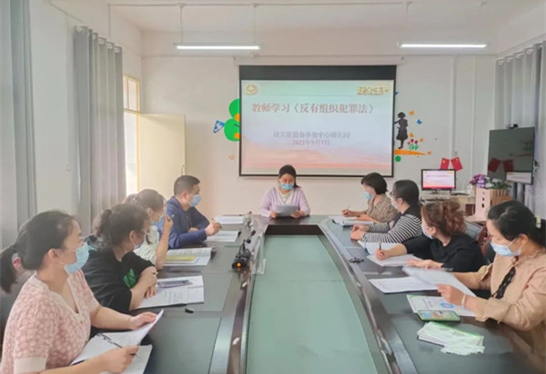 2021年12月24日第十三屆全國(guó)人大常委會(huì)第三十二次會(huì)議通過(guò)了《反有組織犯罪法》,并于2022年5月1日起正式實(shí)施。為保護(hù)全體師幼的合法權(quán)益,營(yíng)造《反有組織犯罪法》濃厚宣傳氛圍,城關(guān)街道辦事處中心幼兒園結(jié)合實(shí)際,積極組織開(kāi)展學(xué)習(xí)《反有組織犯罪法》活動(dòng),進(jìn)一步提升《反有組織犯罪法》的知曉率,增強(qiáng)全體教職工對(duì)掃黑除惡工作的認(rèn)識(shí)和參與度。