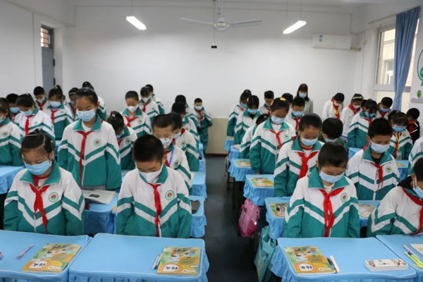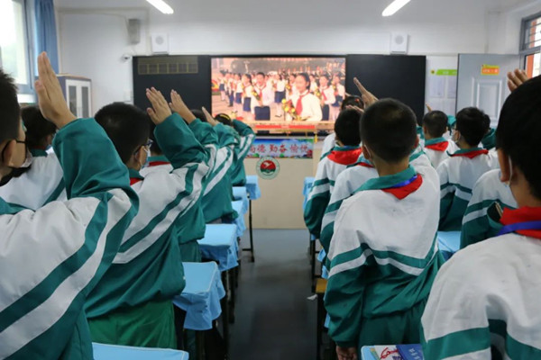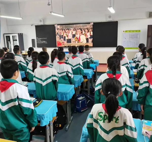 10時(shí)整,向人民英雄敬獻(xiàn)花籃儀式開(kāi)始。屏幕中奏響了《義勇軍進(jìn)行曲》,隊(duì)員們致少年先鋒隊(duì)隊(duì)禮,全體師生高唱中華人民共和國(guó)國(guó)歌。緊接著,全體師生向?yàn)橹袊?guó)人民解放事業(yè)和共和國(guó)建設(shè)英勇獻(xiàn)身的烈士默哀。默哀畢,少先隊(duì)員們同視頻中手持鮮花的少年兒童一起高唱《我們是共產(chǎn)主義接班人》,感受到了身為少先隊(duì)員的榮耀時(shí)刻,更加深刻地銘記住了自己的使命與擔(dān)當(dāng)。最后,在深情的《獻(xiàn)花曲》中,18名禮兵穩(wěn)穩(wěn)抬起花籃,緩步走向人民英雄紀(jì)念碑,將花籃擺放在紀(jì)念碑基座上。習(xí)近平總書(shū)記等黨和國(guó)家領(lǐng)導(dǎo)人登上紀(jì)念碑基座,在花籃前駐足凝視。緬懷先烈,尊崇英雄,每一滴鮮血都不會(huì)白流,每一種犧牲都值得銘記,烈士精神永不磨滅,人民英雄永垂不朽。