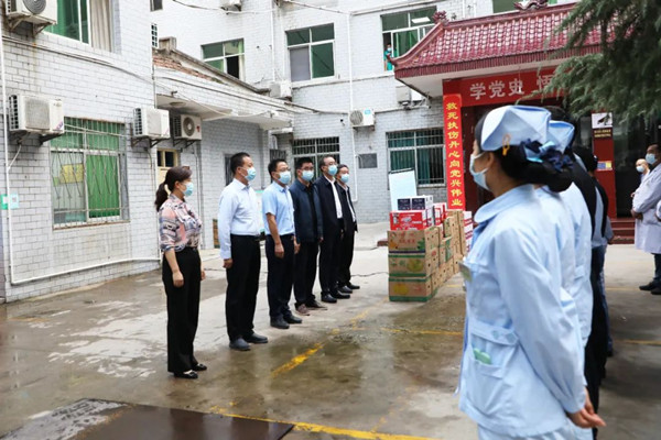 隨后,徐秀全一行來到縣婦計(jì)中心、縣中醫(yī)院、縣醫(yī)院,現(xiàn)場查看了入院人員排查、發(fā)熱門診設(shè)置、工作力量配備等情況,詳細(xì)了解醫(yī)護(hù)人員工作生活情況,感謝他們?yōu)槿h疫情防控工作做出的貢獻(xiàn),囑托他們發(fā)揚(yáng)作風(fēng)、再接再厲。各醫(yī)療機(jī)構(gòu)要嚴(yán)格落實(shí)“掃碼、測溫、消毒、戴口罩、一米線”等各項(xiàng)防控措施,做好縣醫(yī)院、中醫(yī)院以及“黃碼醫(yī)院”患者、醫(yī)護(hù)、陪護(hù)、后勤人員閉環(huán)管理,全面消除風(fēng)險(xiǎn)隱患,確保醫(yī)療機(jī)構(gòu)安全。
