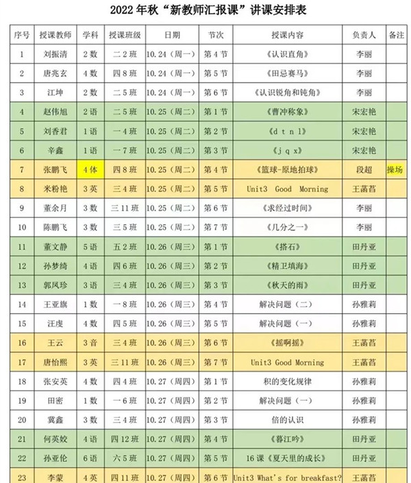 本次新教師匯報課參賽選手為2022年新參加工作的特崗教師,共有語、數(shù)、英、音樂、體育5個學(xué)科24位教師參與,分語文組、數(shù)學(xué)組、英綜組三大組匯報展示。這群初為人師的孩子們在師父的帶領(lǐng)下,都能認真鉆研教材,研究課程標準和教學(xué)策略,精心備課,研磨細節(jié),在課堂教學(xué)中靈活運用豐富的教學(xué)資源,以豐盈充實的教學(xué)內(nèi)容、新穎獨特的教學(xué)方法向全校教師充分展現(xiàn)自己的風(fēng)采,亮出了自己的“名片”。