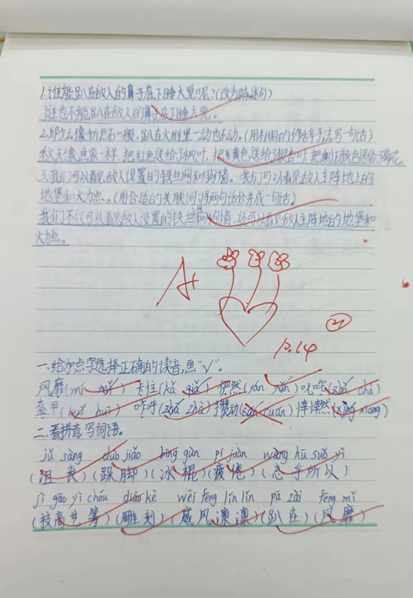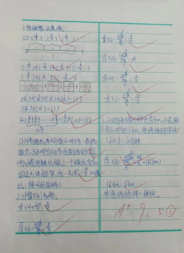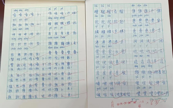 翻開學(xué)生的作業(yè),格式規(guī)范,書寫工整,給人一種賞心悅目之感。教師批改細(xì)致、規(guī)范。老師們都能做到作業(yè)進(jìn)度和課堂教學(xué)同步,作業(yè)量適中,內(nèi)容有針對性,批改及時,有批改日期,有激勵性評語,有錯題更正,學(xué)生改正后的錯題老師能進(jìn)行二次批閱。作業(yè)題型設(shè)計(jì)精巧,難易適中,既有基礎(chǔ)積累,又有分層訓(xùn)練。可見,教師平時非常注重學(xué)生作業(yè)習(xí)慣的養(yǎng)成教育。
