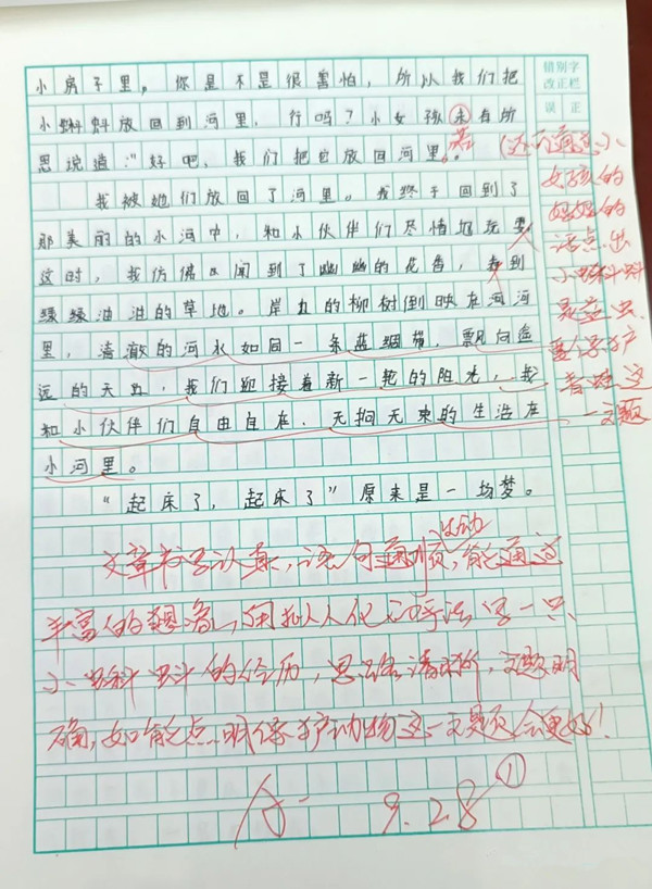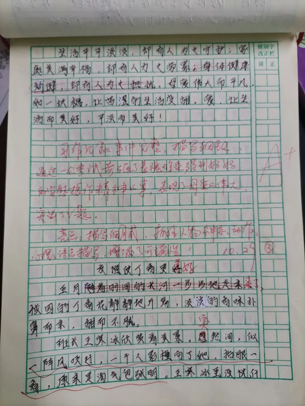 中高年級作文批改認(rèn)真,教師對學(xué)生習(xí)作點(diǎn)評詳細(xì)。每一條波浪線,每一句評語傾注著教師們多少心血,這些細(xì)致的批注、評價,展現(xiàn)著教師們對工作的兢兢業(yè)業(yè)、精益求精。這一本本作業(yè)也在無聲地傾訴著我校教師工作的勤勉。