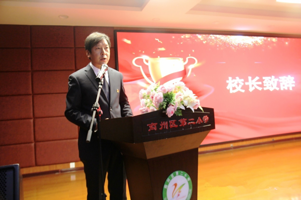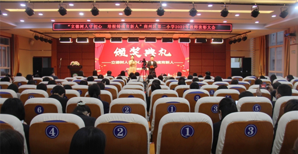 表彰大會在莊嚴(yán)的國歌聲中拉開帷幕。校長郭強熱情洋溢的致辭,既有對過去一年商州二小各項工作的肯定,又有對后期工作的展望與期待,為全體教師明確了未來奮斗的方向。