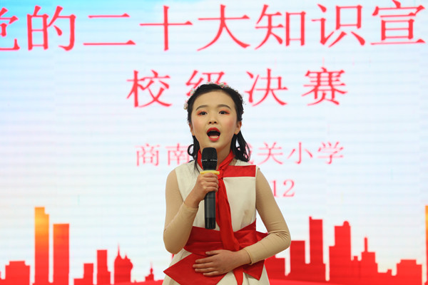 本次大賽是商南縣城關(guān)小學(xué)貫徹落實(shí)《中共中央關(guān)于全面加強(qiáng)新時(shí)代少先隊(duì)工作的意見(jiàn)》,推進(jìn)黨史學(xué)習(xí)教育常態(tài)化長(zhǎng)效化,引導(dǎo)廣大少先隊(duì)員厚植愛(ài)黨、愛(ài)國(guó)、愛(ài)社會(huì)主義情感、讓紅色基因、革命薪火代代相傳的的重要舉措。我們將以此次黨的二十大知識(shí)紅領(lǐng)巾宣講活動(dòng)為契機(jī),讓隊(duì)員們更好的了解黨的二十大知識(shí),講好紅色故事,弘揚(yáng)革命精神,傳承紅色基因,引領(lǐng)少先隊(duì)員努力成長(zhǎng)為能夠擔(dān)當(dāng)民族復(fù)興大任的時(shí)代新人。(王曉暢)