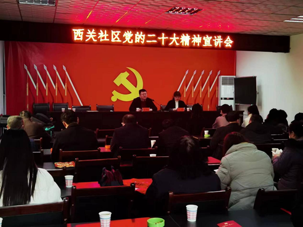 商南縣城關(guān)街道西關(guān)社區(qū)包社區(qū)領(lǐng)導(dǎo)張強(qiáng)延同志圍繞深入學(xué)習(xí)領(lǐng)會(huì)黨的二十大精神的核心要義、深刻把握黨的二十大報(bào)告關(guān)于“增強(qiáng)黨組織政治功能和組織功能,堅(jiān)持大抓基層的鮮明導(dǎo)向,把基層黨組織建設(shè)成為有效實(shí)現(xiàn)黨的領(lǐng)導(dǎo)的堅(jiān)強(qiáng)戰(zhàn)斗堡壘,激勵(lì)黨員發(fā)揮先鋒模范作用,保持黨員隊(duì)伍先進(jìn)性和純潔性?!钡拇笳结樅涂傮w部署等方面,進(jìn)行了系統(tǒng)宣講和闡述。他強(qiáng)調(diào),社區(qū)黨總支要將學(xué)習(xí)宣傳貫徹黨的二十大精神作為當(dāng)前和今后一個(gè)時(shí)期的首要政治任務(wù),更加緊密團(tuán)結(jié)在以習(xí)近平同志為核心的黨中央周圍,深刻領(lǐng)悟“兩個(gè)確立”的決定性意義,增強(qiáng)“四個(gè)意識(shí)”、堅(jiān)定“四個(gè)自信”、做到“兩個(gè)維護(hù)”,不斷加強(qiáng)黨對(duì)基層組織建設(shè)工作的集中統(tǒng)一領(lǐng)導(dǎo)。要進(jìn)一步學(xué)思踐悟習(xí)近平新時(shí)代中國特色社會(huì)主義思想特別是習(xí)近平大抓基層思想,充分發(fā)揚(yáng)黨建引領(lǐng)、黨員的戰(zhàn)斗堡壘作用和先鋒模范作用,解決廣大群眾家門口急難愁盼的問題,切實(shí)提升老百姓的幸福感、獲得感、安全感。