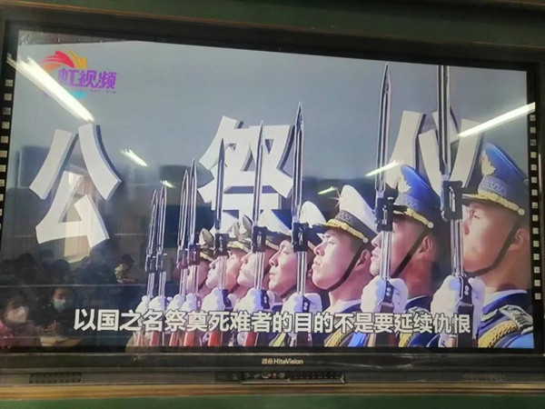 12月13日上午十點(diǎn)整,各班組織學(xué)生觀看了國家公祭日活動(dòng)直播,輔導(dǎo)員老師向隊(duì)員們介紹有關(guān)國家公祭日的歷史背景、日本侵略者的罪惡行徑、立法歷程、公祭活動(dòng)以及確立國家公祭日的現(xiàn)實(shí)意義及影響,隊(duì)員們通過默哀的形式,深切緬懷南京大屠殺的無辜死難者,深切緬懷所有慘遭日本侵略者殺戮的死難同胞,深切緬懷為中國人民抗日戰(zhàn)爭勝利獻(xiàn)出生命的革命先烈和民族英雄。隊(duì)員們紛紛表示要珍惜今天的和平與幸福生活,同時(shí)肩負(fù)起振興中華民族的重任,奮發(fā)圖強(qiáng),好好學(xué)習(xí),早日?qǐng)?bào)效祖國。