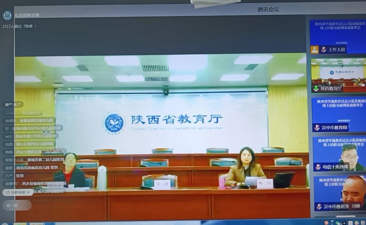 近日,陜西省教育廳基教一處組織召開了“陜西省學(xué)前教育基地建設(shè)線上經(jīng)驗交流周活動部署會”,周密安排此項活動。商南縣試馬鎮(zhèn)中心幼兒園保教處相關(guān)老師參加了此次視頻會。