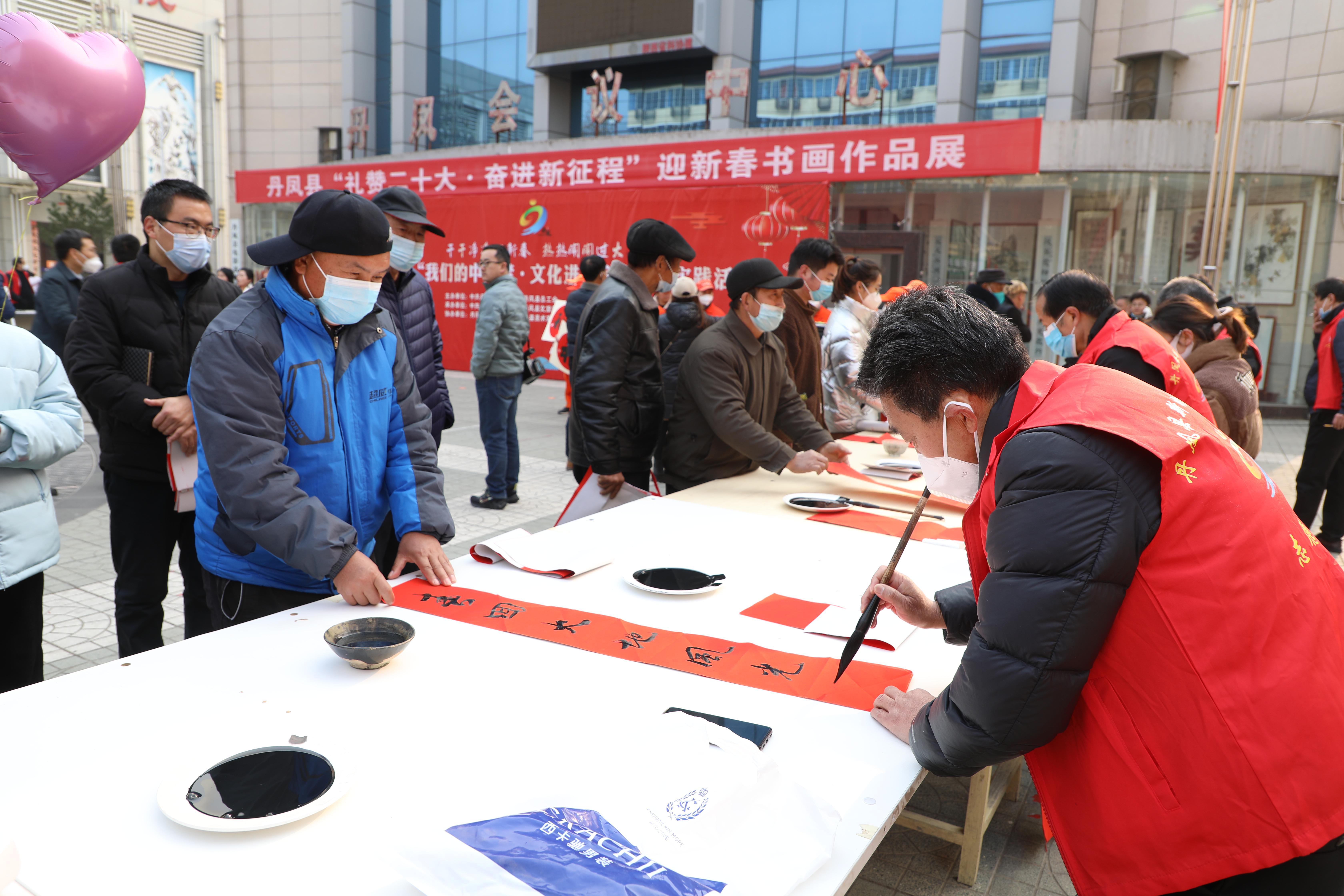 出席活動(dòng)的領(lǐng)導(dǎo)及市民參觀了書(shū)畫(huà)展,本次書(shū)畫(huà)展共展出60余名書(shū)畫(huà)愛(ài)好者近百幅作品,其中書(shū)法作品40余幅、繪畫(huà)作品50余幅,作品題材廣泛,風(fēng)格多樣,從不同的視角,用不同的藝術(shù)手法,禮贊黨的二十大,歌頌美好生活。隨后,來(lái)自丹鳳縣書(shū)法家協(xié)會(huì)、美術(shù)家協(xié)會(huì)、老年書(shū)畫(huà)學(xué)會(huì)的40余名書(shū)法家和書(shū)法愛(ài)好者揮毫潑墨,為現(xiàn)場(chǎng)群眾創(chuàng)作春聯(lián)、書(shū)畫(huà)作品,向全縣人民送上新春的祝福和美好的祝愿。