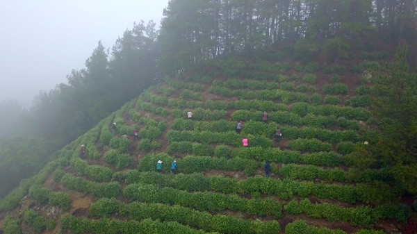 “白茶是綠茶的一種,因葉面綠色略淺而得名。這一坡面的地,去年才從村民手中流轉(zhuǎn)過來,種的都是新品白茶黃金葉。新茶氨基酸含量更高、口感更鮮爽,產(chǎn)品附加值和給村民帶來的收益也比種老白茶更高?!眮辛⑸棠峡h試馬鎮(zhèn)馬泉山山頂,商南縣沁園春茶業(yè)有限責任公司現(xiàn)場負責人熊濤說。