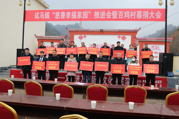 2月23日,商南縣試馬鎮(zhèn)慈善幸福家園工程推進(jìn)會(huì)暨百雞村募捐大會(huì),拉開了全鎮(zhèn)慈善基層組織建設(shè)的大幕。商南縣政協(xié)原主席、縣慈善協(xié)會(huì)會(huì)長(zhǎng)王守華到會(huì)指導(dǎo)。當(dāng)天試馬鎮(zhèn)百雞村慈善工作站掛牌成立,愛心企業(yè)、熱心人士及鄉(xiāng)賢踴躍捐款捐物,共捐贈(zèng)9.3萬元善款及物資。