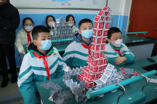 五年級的“紙牌搭建”和六年級的“蘿卜搭建”比賽是對孩子們專注力、空間平衡能力和創(chuàng)新思維的一種考驗,只見他們聚精會神,精誠協(xié)作,讓一張張普通紙牌、一塊塊尋常的蘿卜,變成了一件件令人嘆為觀止的藝術(shù)品。參加比賽的孩子們紛紛表示,本次活動讓他們真正感受到了團結(jié)就是力量,協(xié)作創(chuàng)造奇跡。
