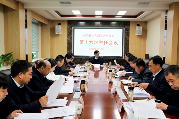 2月27日,山陽縣人大常委會主任井曉奇主持召開山陽縣十九屆人大常委會第十六次主任會議,縣人大常委會副主任劉忠高、楊學軍、黃祥來、劉秀玲出席會議。