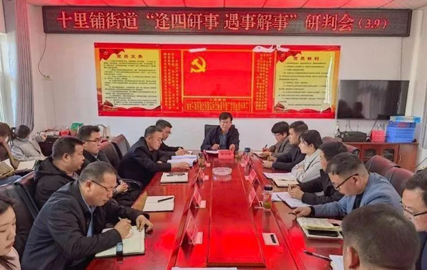 3月9日下午,山陽縣十里鋪街道召開“逢四研事、遇事解事”周例會,會議由街辦主任黃古軍主持,所有科級領導,平安辦、司法所全體干部參加會議。